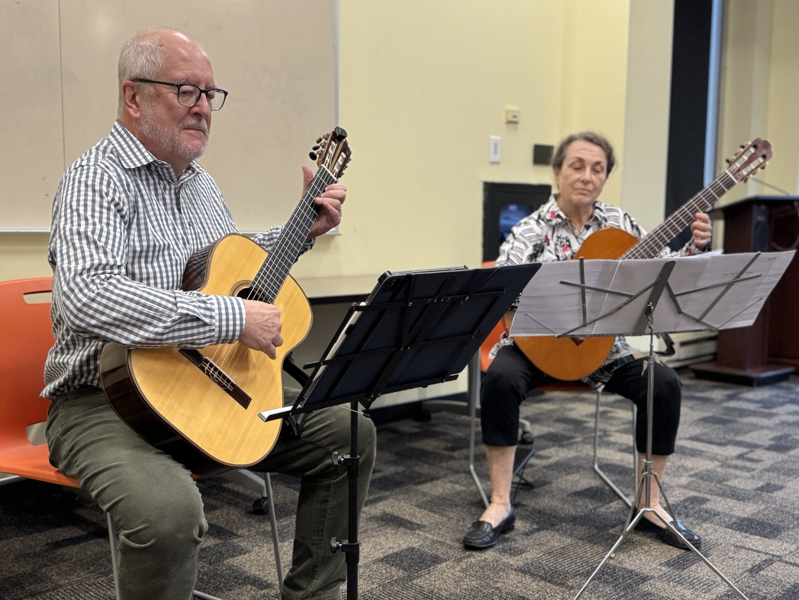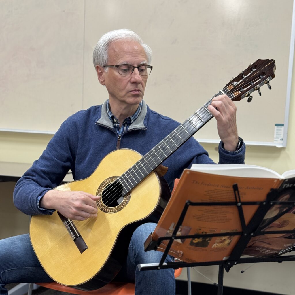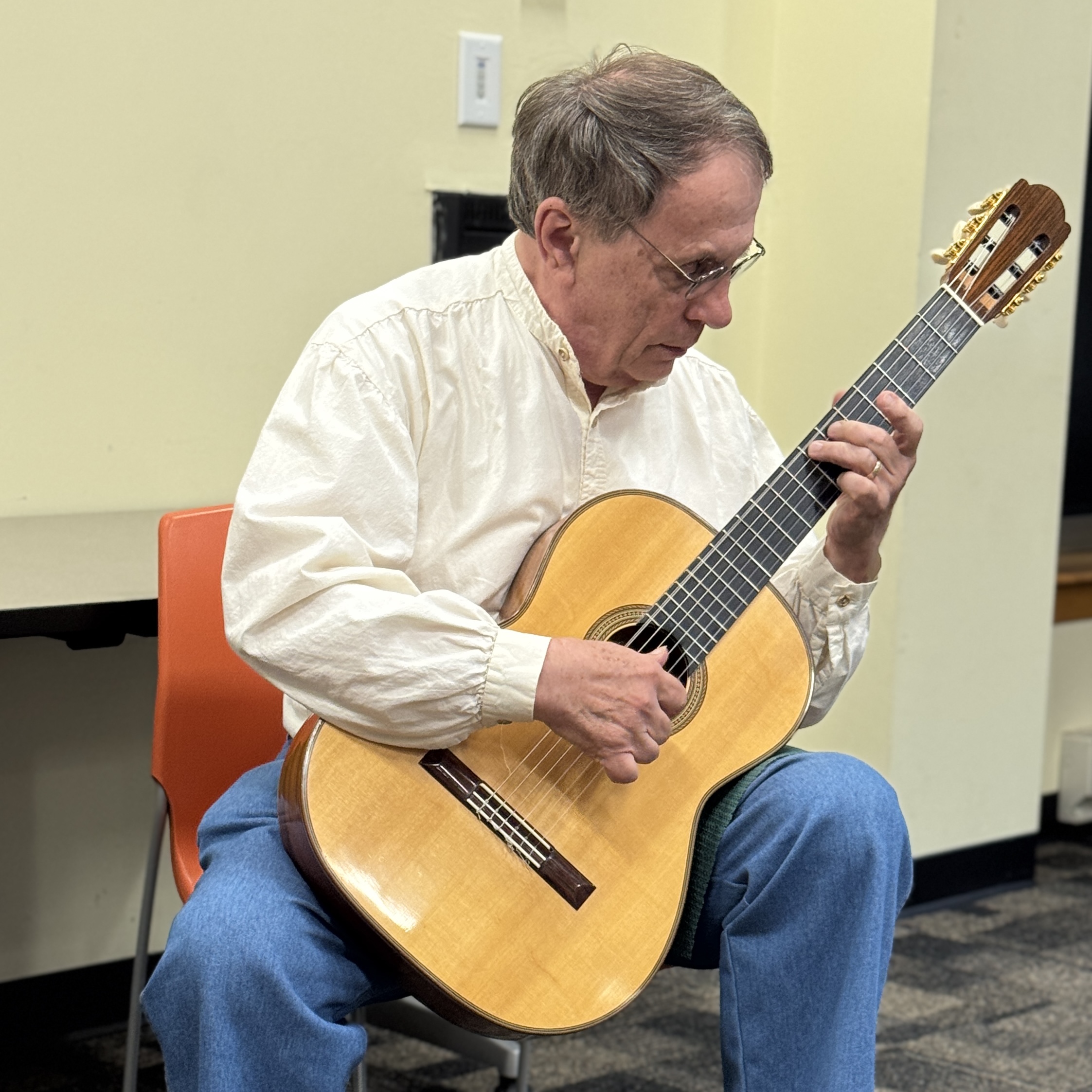 This meeting featured a special performance by Shane McKevitt, who is preparing for two competitions at Feis Ceoil, a major music festival in Dublin, Ireland. He entered two competitions: one for the Aileen Gore Cup (for recitals on a guitar or other string instrument); and one for the Guitar Bach Prize (two contrasting movements to be chosen from the Lute Suites, Violoncello Suites, or the Violin works by J.S. Bach). While these competitions can be very important in the musical career of many entrants, Shane says he is “treating it more as performance practice than anything else.